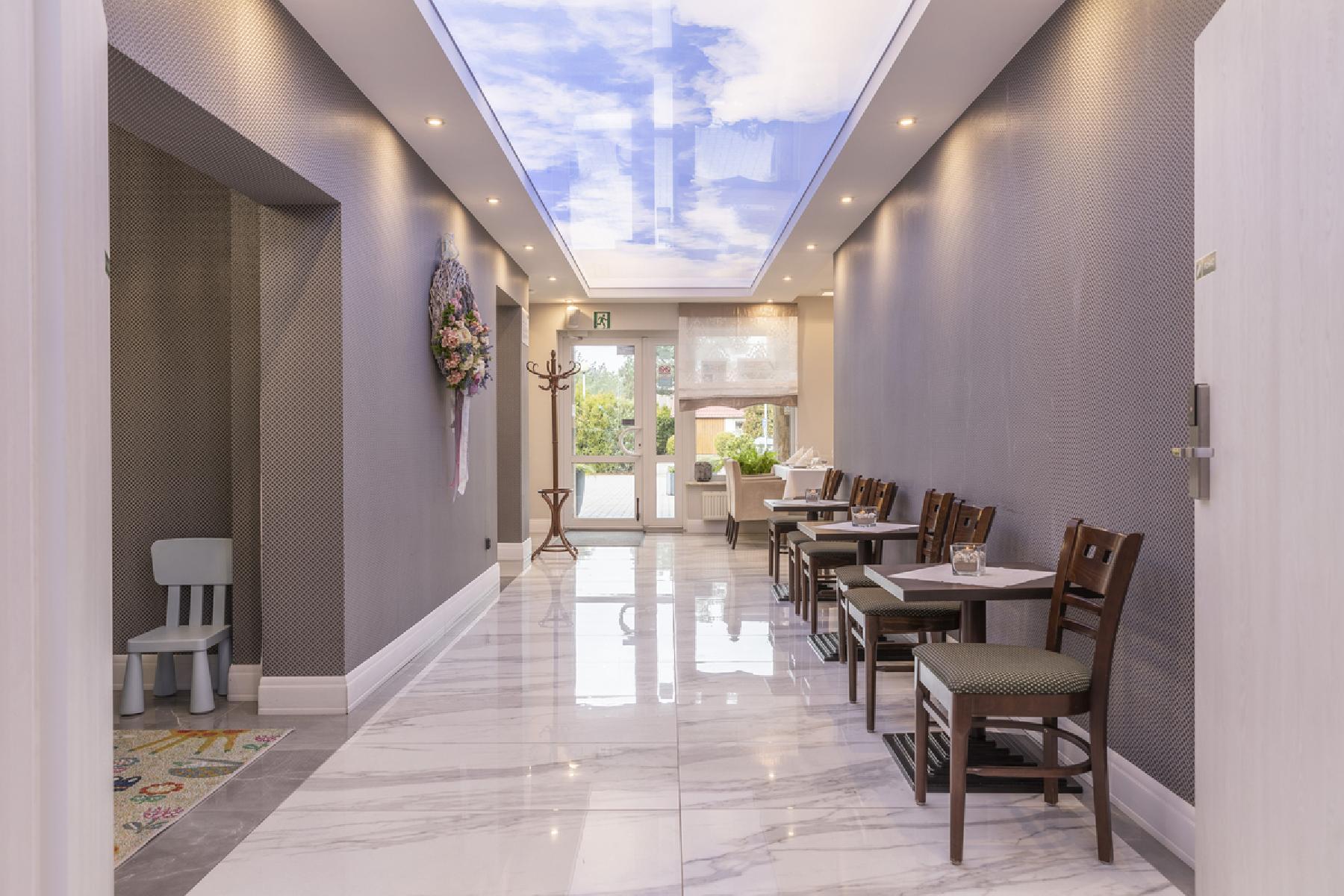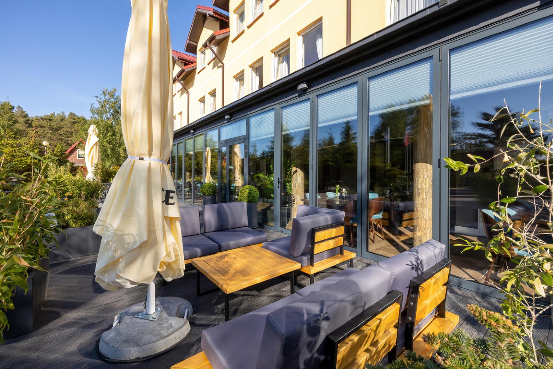 Das freundliche, 2024 teilweise renovierte Hotel bietet Dir neben den insgesamt 65 Zimmern eine einladende Empfangshalle mit Sitzgelegenheit, eine Rezeption und Lobby mit Sitzgelegenheiten, einen Innenpool und eine Terrasse sowie ein Wellnessbereich mit Finnischer Sauna, Infrarotkabine und Ruheraum. Für Dein leibliches Wohl stehen Dir das Restaurant "BURSZTYN" mit Frühstücksraum und die Hotelbar zur Verfügung. Radfahrer können den hauseigenen, abschließbaren Fahrradabstellraum nutzen. Das Rauchen ist nur in ausgewiesenen Bereichen gestattet.