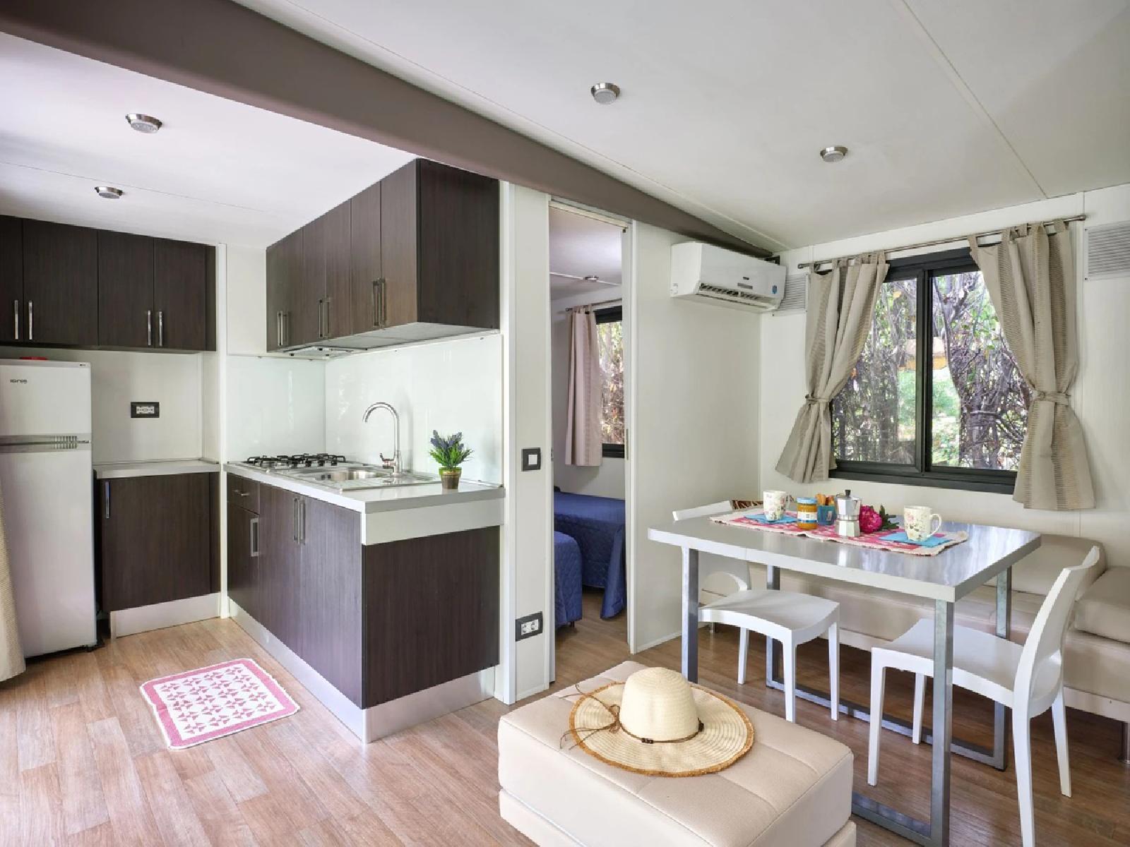 Die komfortablen Appartements verfügen über SAT-TV, Essgelegenheit, Klimaanlage, Dusche, WC und eine Terrasse. Die Appartements bestehen aus einem Schlafraum, einem Wohnschlafraum und verfügen über eine Kitchenette (mit Herd, Kühlschrank und Geschirr). Der Wohnschlafraum verfügt über ein Doppelschlafsofa. Im Schlafraum steht ein Doppelbett zur Verfügung.
