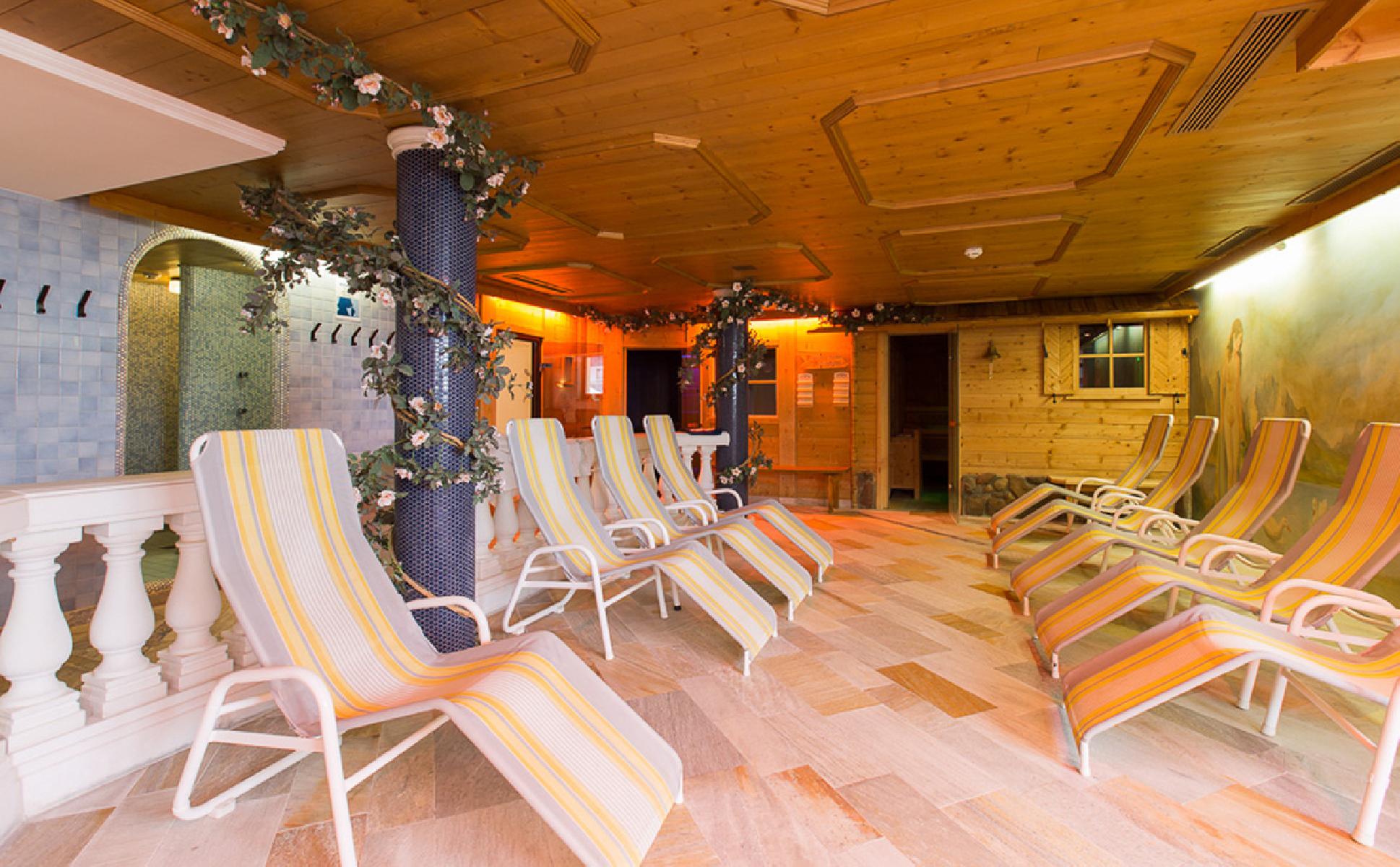 - Tägliche Nutzung des ca. 800 m² großen Wellnessbereichs (von 15:00 - 20:00 Uhr geöffnet) mit folgenden Einrichtungen: