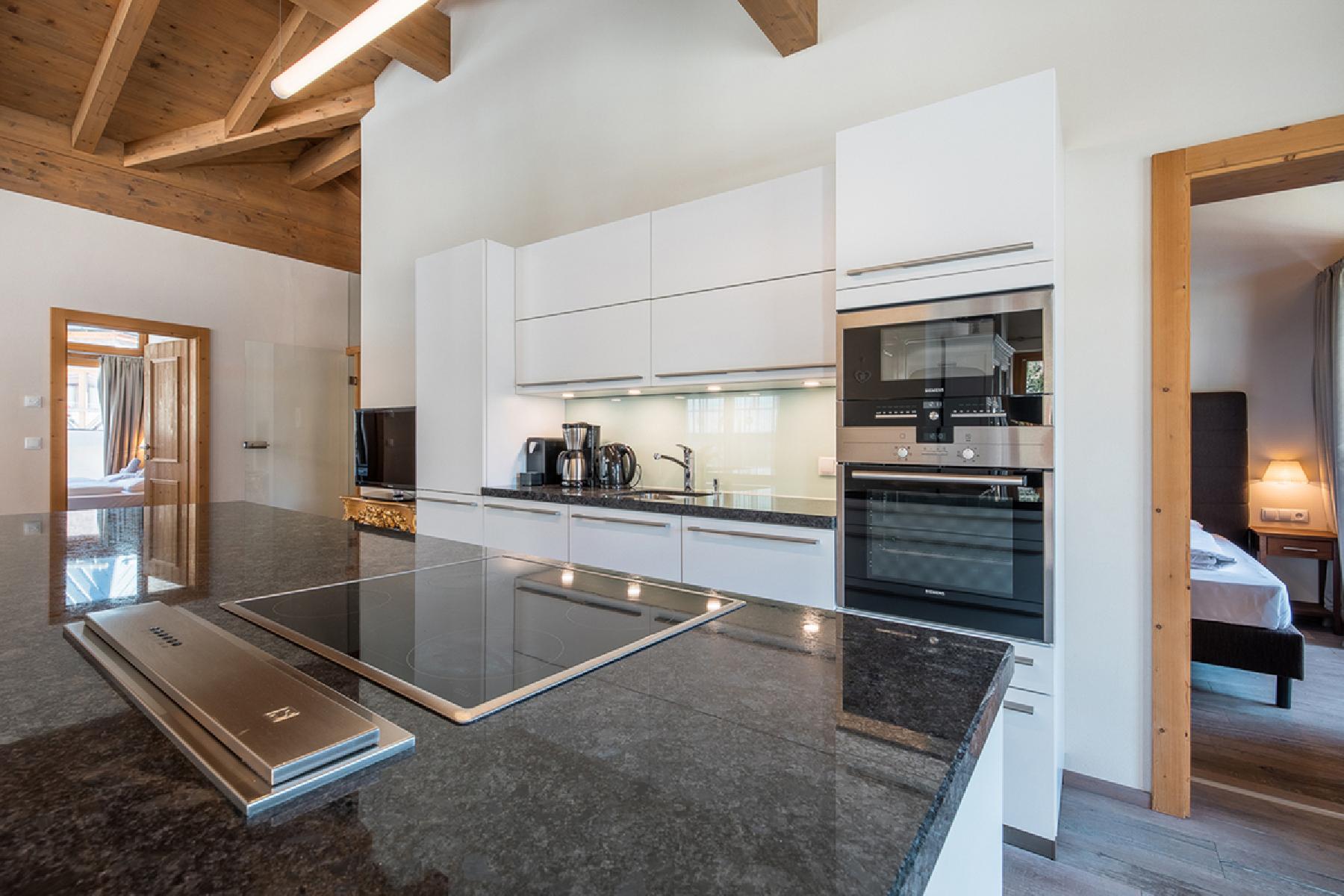 **1A** - Die gemütlichen und modernen Appartements verfügen über einen Flat-Screen-TV, Sitzgelegenheit, Essgelegenheit, ein Badezimmer (Dusche oder Badewanne, WC) und eine Terrasse oder Balkon. Die Appartements bestehen aus einem Schlafraum, einem Wohnschlafraum und verfügen über eine Küche (mit Mikrowelle, Herd mit 4 Kochplatten, Wasserkocher, Kaffeemaschine, Kühlschrank, Geschirrspüler, Geschirr und Backofen). Im Schlafraum steht ein Doppel-Boxspringbett zur Verfügung und der Wohnschlafraum verfügt über ein Einzelschlafsofa. Die durchschnittliche Größe der Appartements beträgt ca. 53 m².