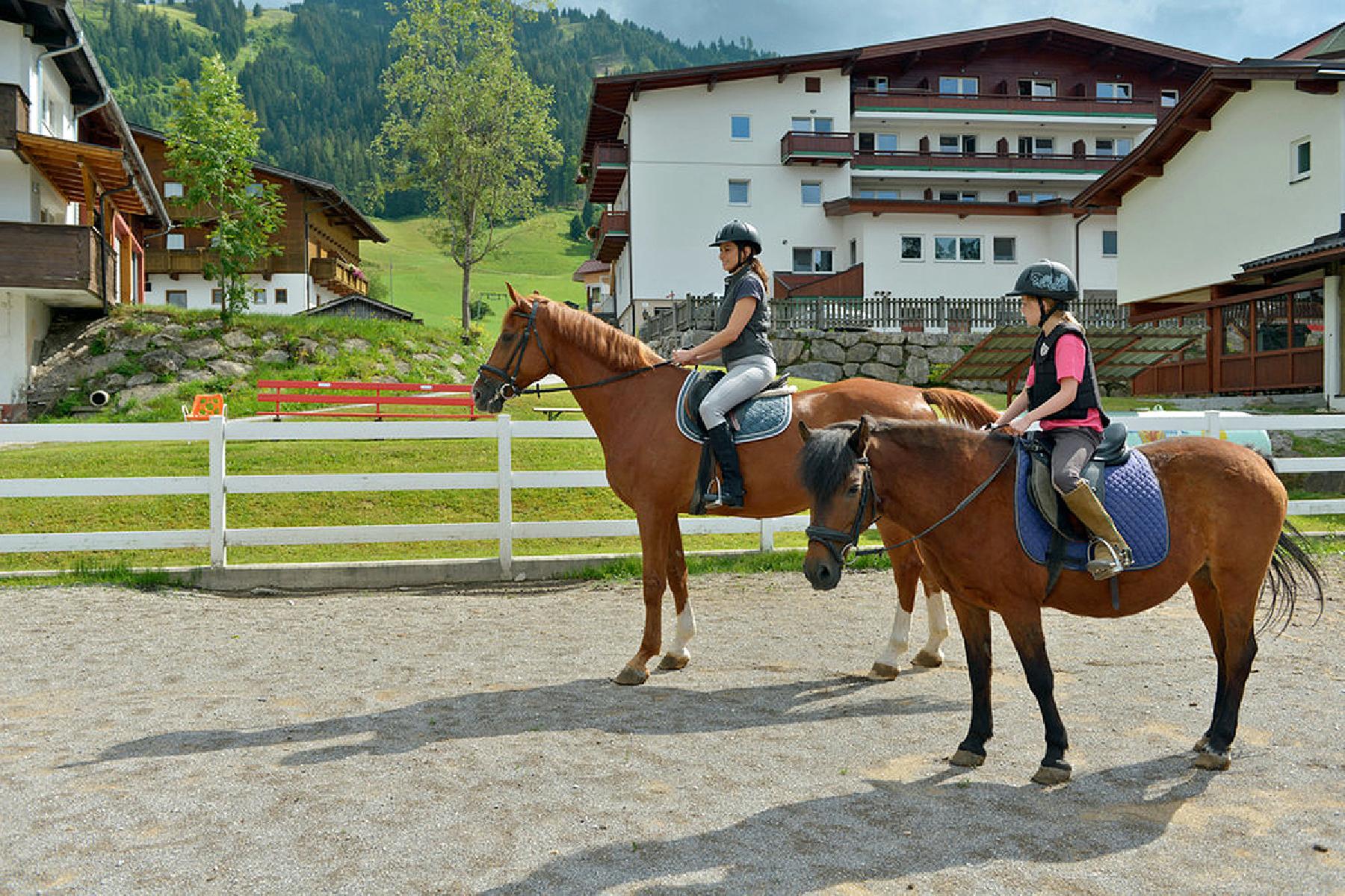 Ab 7 Nächten Aufenthalt: 1 Stunde Reiten für Kinder bis 14 Jahren inklusive, eine halbe Stunde für Kinder bis 7 Jahre inklusive (unter 7 Jahre Ponyreiten)