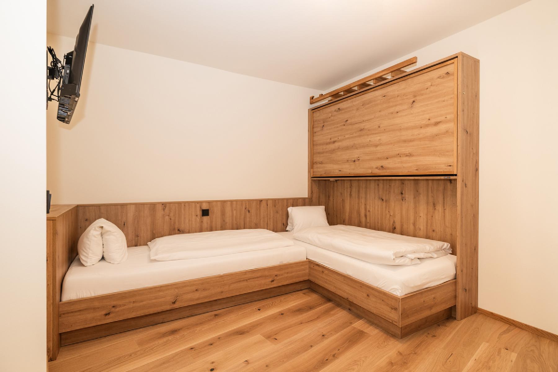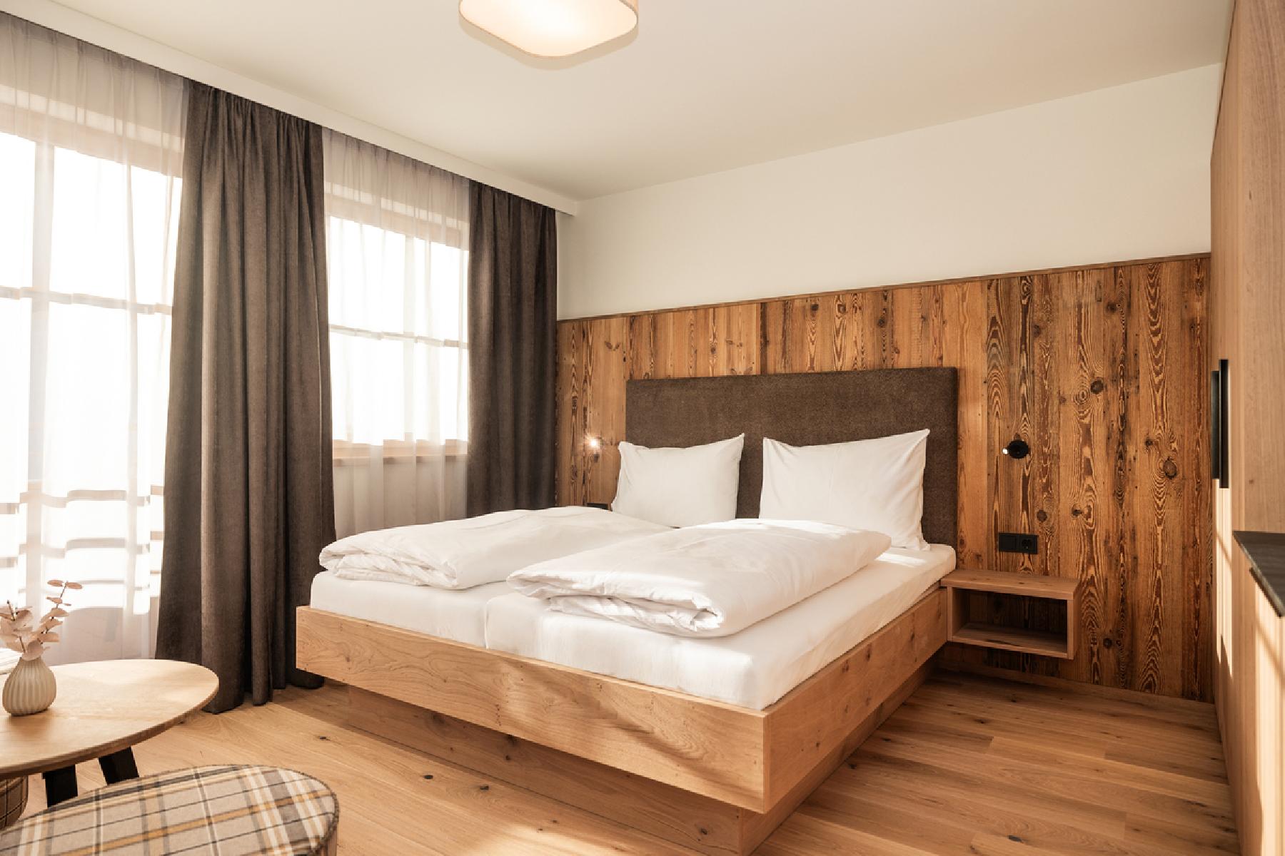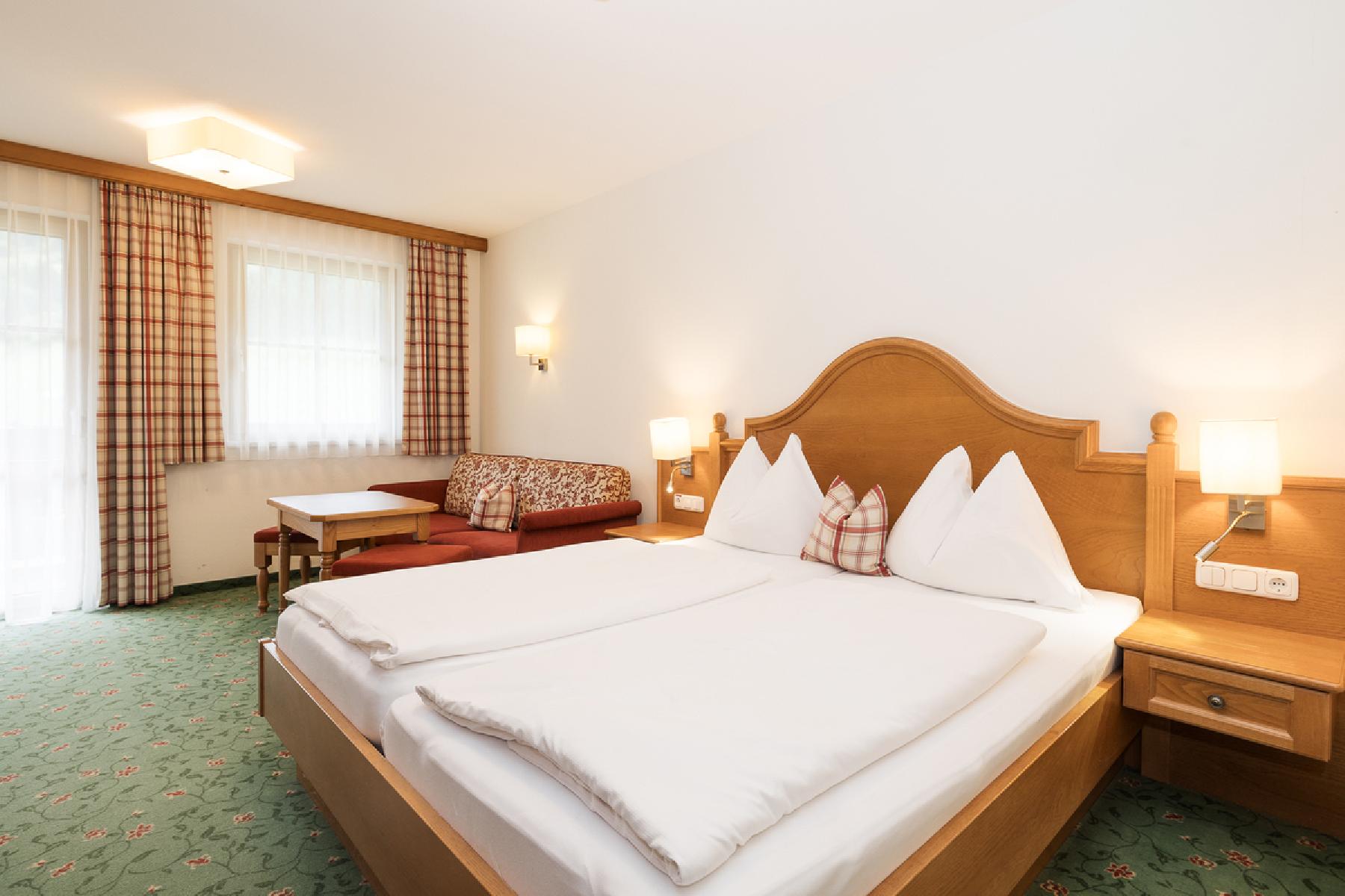 Die komfortablen und hellen Zimmer verfügen über SAT-TV mit integriertem Radio, Telefon, Dusche, WC, Haartrockner und einen Balkon. Die Zimmer bestehen aus einem Schlafraum mit einem Doppelbett sowie einem Wohnschlafraum mit 2 fixen Einzelbetten. Die durchschnittliche Zimmergröße beträgt ca. zwischen 35 und 45 m².