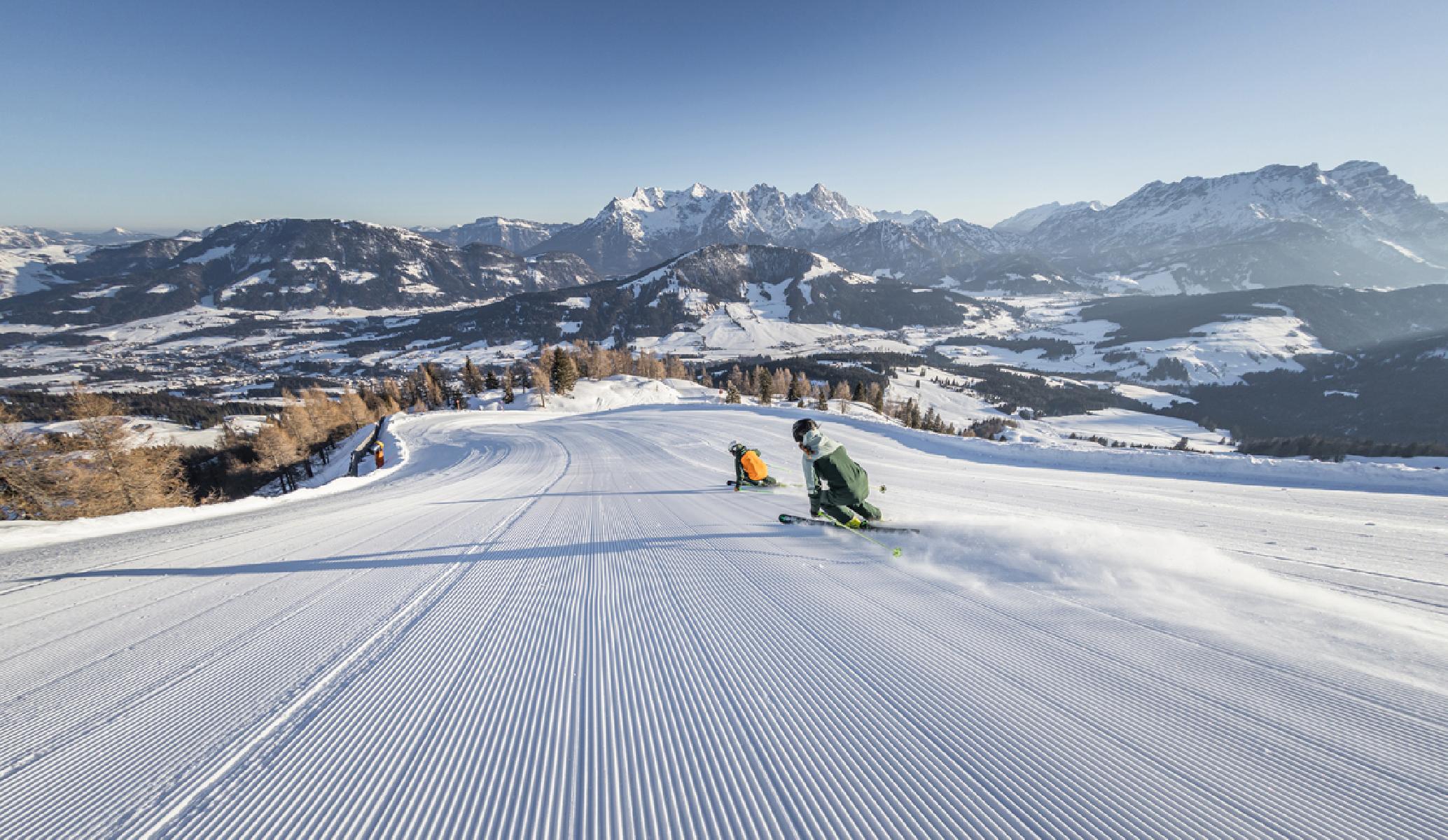 Präparierte Pisten im Skigebiet Saalbach - Hinterglemm Leogang: