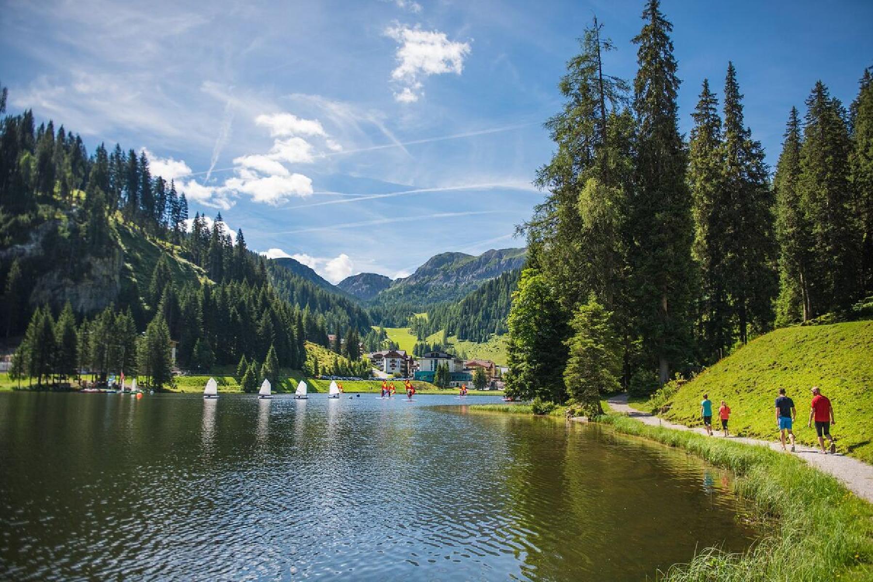 Die lebendige Ortschaft Zauchensee besticht neben ihrer zentralen Lage insbesondere durch ihre abwechslungsreichen Gestaltungsmöglichkeiten. Dazu bietet Dein Urlaubsort eine umfangreiche Auswahl an Lokalen, unberührte Natur sowie eine eindrucksvolle Bergkulisse. Erlebe wohltuend entspannende Stunden im ca. 1,4 km entfernten Thermalbad Erlebnis-Therme Amadé. Genieße den Reiz der Natur auf dem Rad oder Mountainbike oder bei ausgiebigen Wanderungen. Ein weitläufiges Radwegenetz und gut markierte Wanderwege bieten dafür die optimalen Voraussetzungen. Gleichwohl lässt sich die Gegend auch wunderbar beim Nordic Walking erkunden. Gerade im Sommer kann man in und um Zauchensee beim Schwimmen ausgezeichnet Naturerlebnis und sportliche Betätigung miteinander verbinden.