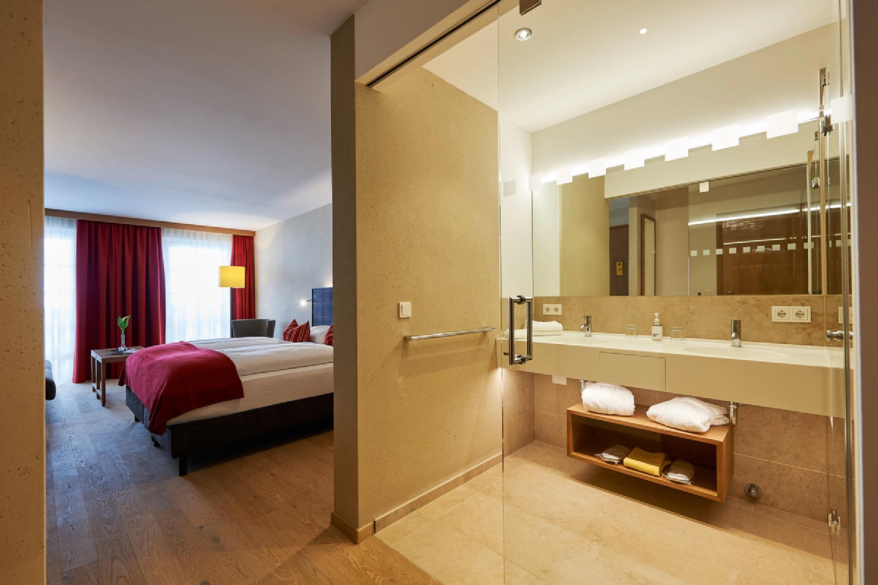 Die hellen Zimmer verfügen über Flat TV, Schreibtisch, Föhn, Kosmetikspiegel sowie Dusche oder Badewanne und über ein separates WC. Die Zimmer bestehen aus einem Schlafraum mit einem Doppelbett und einem Doppelschlafsofa. Die durchschnittliche Zimmergröße beträgt ca. 29 - 32 m².