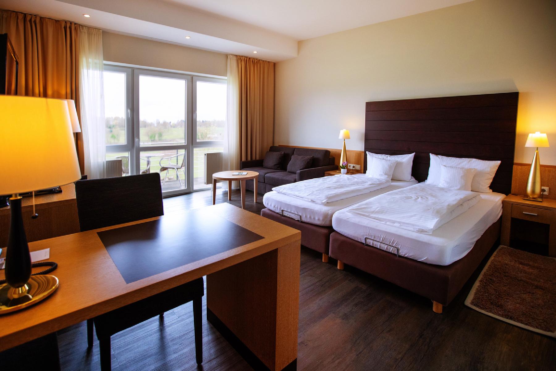 Die Zimmer verfügen über Flat-Screen-Fernseher mit SAT-TV, Telefon, Badewanne/WC, Haartrockner und Balkon oder Terrasse. Die Zimmer bestehen aus einem Schlafraum mit einem Doppelbett und aus einem Wohnschlafraum mit einem Doppelschlafsofa. Die durchschnittliche Zimmergröße beträgt circa 29 m².