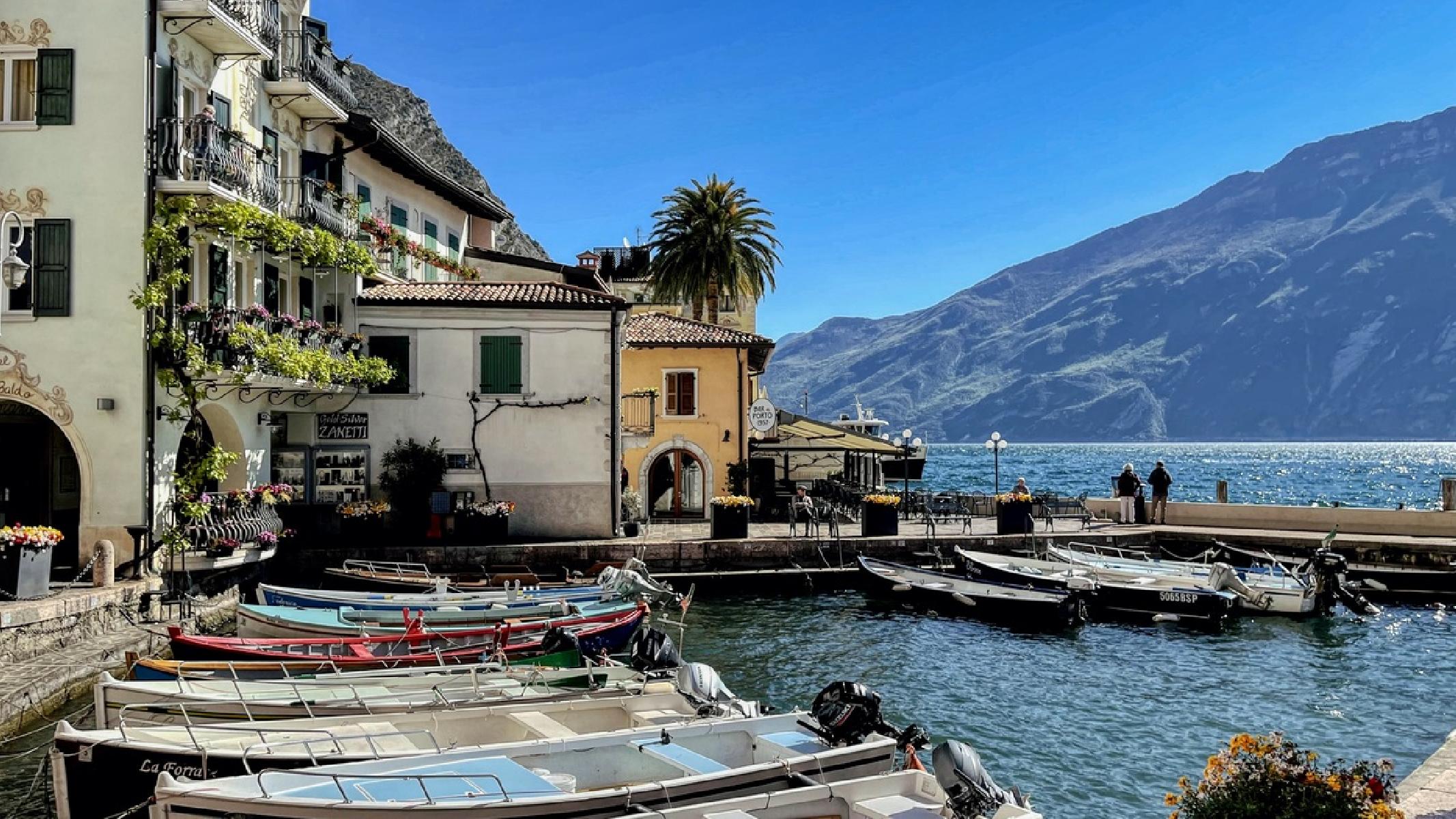 Limone sul Garda ist ein malerischer Ort am westlichen Ufer des Gardasees, bekannt für seine atemberaubende Lage zwischen den steilen Bergen und dem klaren Wasser des Sees. Die charmante Altstadt mit ihren engen Gassen, historischen Gebäuden und blühenden Zitronenhainen zieht Besucher aus der ganzen Welt an. Der Ort bietet eine perfekte Mischung aus Natur, Kultur und Erholung. Besonders die Uferpromenade lädt zu gemütlichen Spaziergängen ein, während sich das Panorama von den Bergen und dem See aus immer wieder verändert. Limone ist bekannt für sein mildes Klima und eignet sich sowohl im Sommer für Badeurlaub als auch im Frühling und Herbst für Wanderungen und Radfahren. Der Ort bietet zahlreiche Restaurants, in denen man regionale Spezialitäten wie Fischgerichte und Zitronenprodukte genießen kann. Limone sul Garda ist zudem ein idealer Ausgangspunkt, um den Gardasee mit dem Boot zu erkunden.