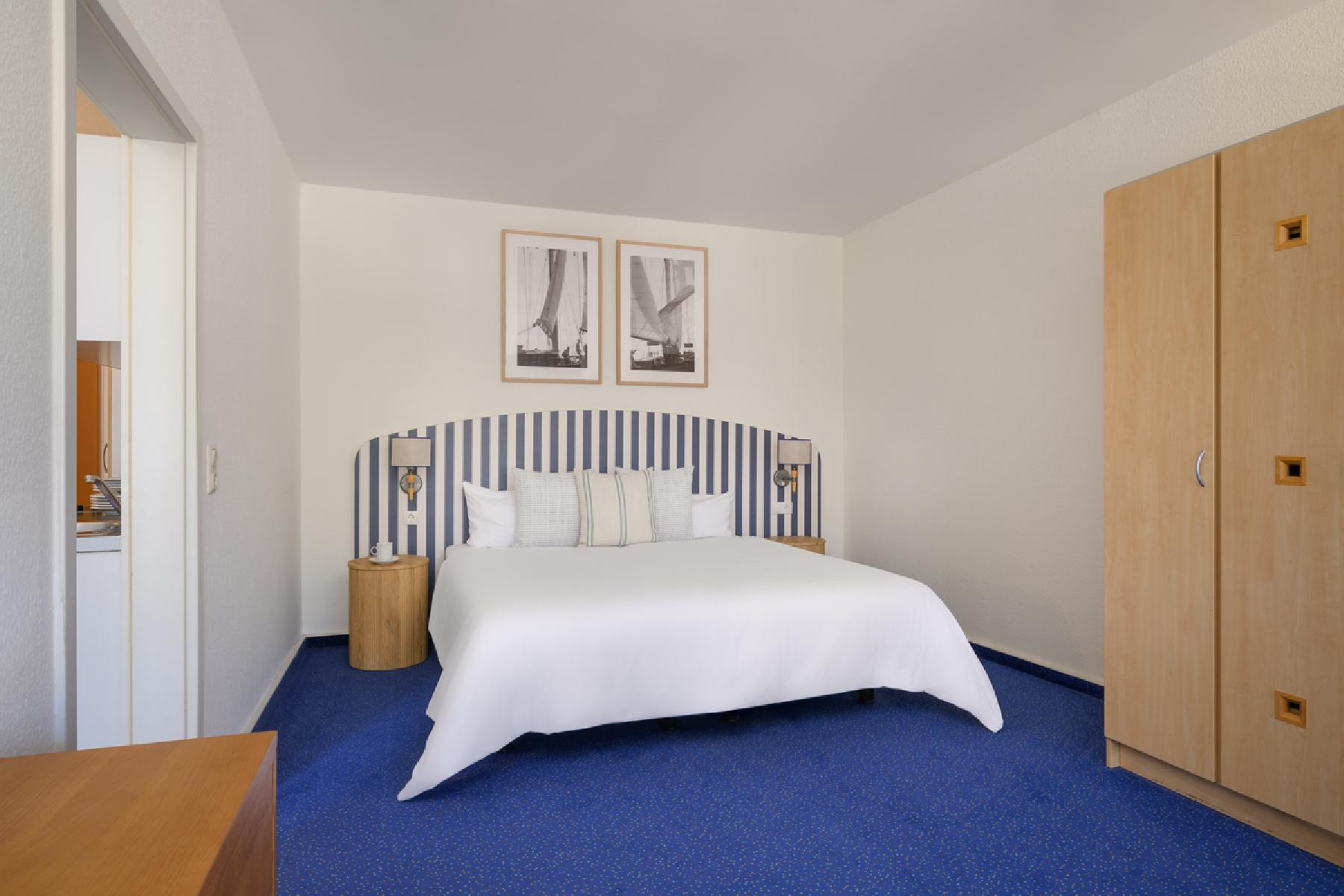 Die Zimmer verfügen über SAT-TV, integrierte Küchenzeile (Kühlschrank, Kaffeemaschine, Wasserkocher, Toaster und Cerankochfeld), Dusche/WC und einen Balkon. Die Zimmer bestehen aus einem Schlafraum mit einem Doppelbett und aus einem Wohnschlafraum mit Doppelschlafsofa. Die durchschnittliche Zimmergröße beträgt ca. 39 m².
