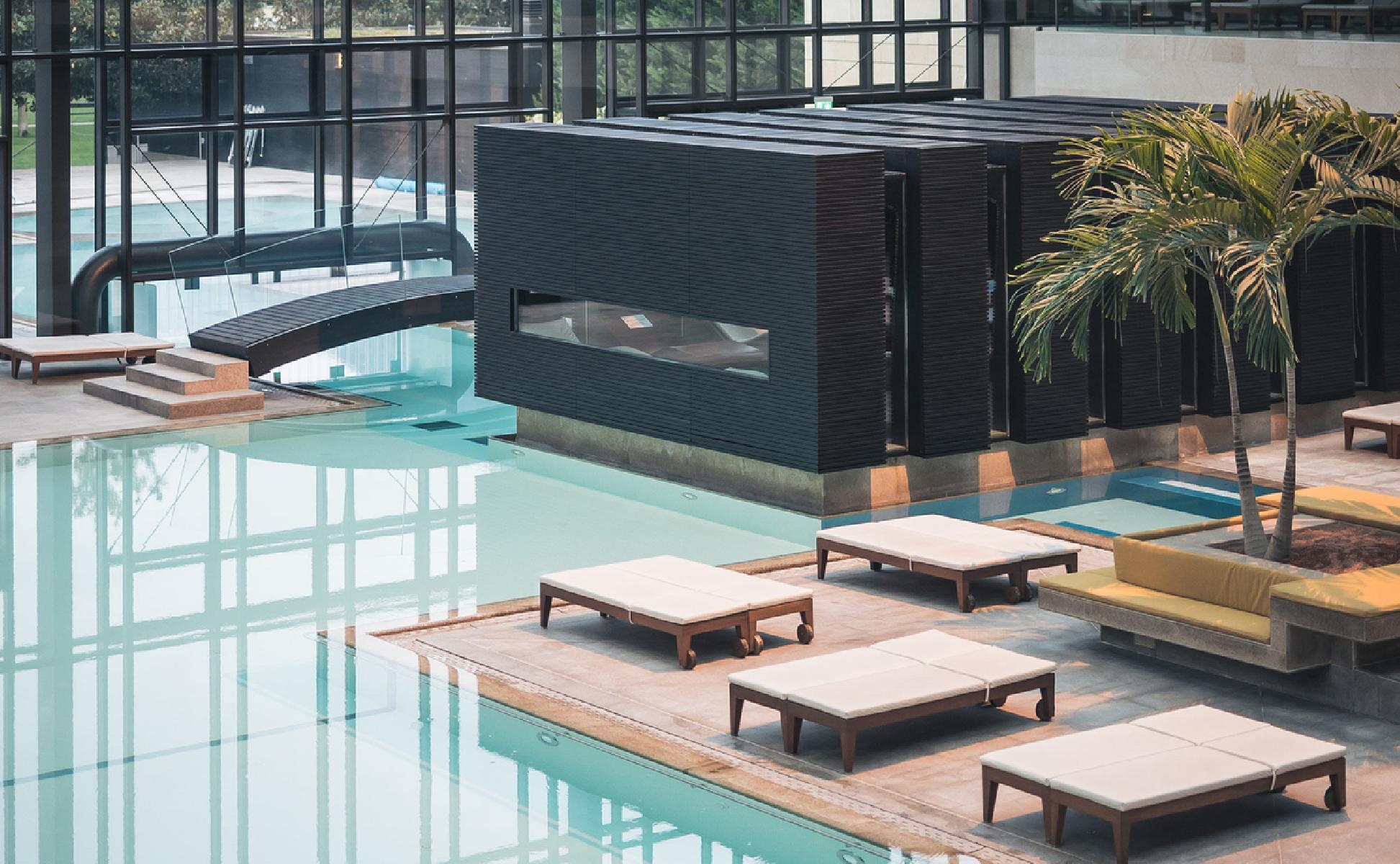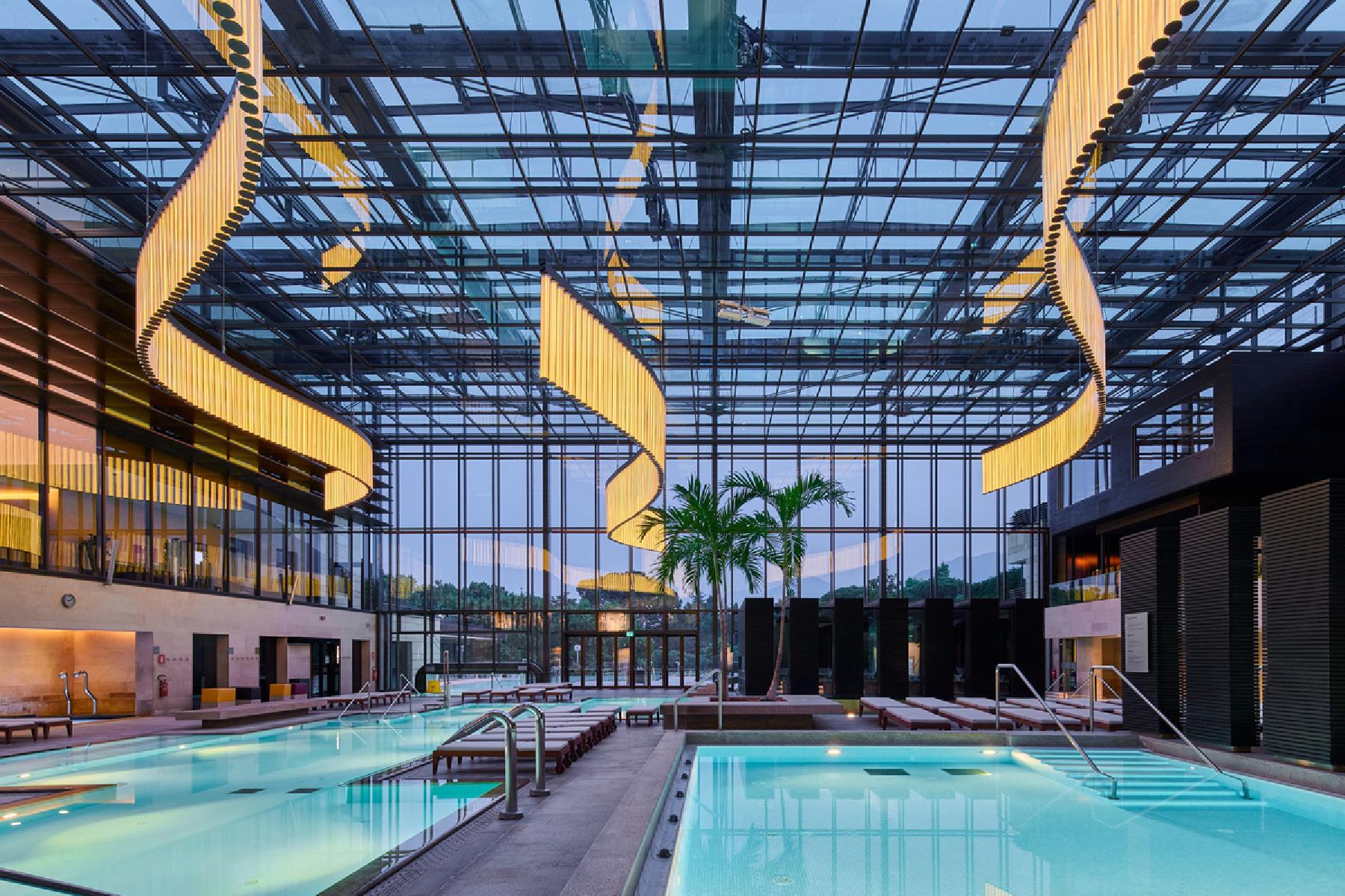 In den weitläufigen Innen- und Außenbereichen lässt sich Wellness mit der ganzen Familie genießen. Zahlreiche Pools mit wohltuendem Thermalwasser, großzügige Liegeflächen und der Blick auf die umliegende Bergwelt schaffen ein entspanntes Ambiente. Ob im lichtdurchfluteten Innenbereich oder in den Außenbecken mit Panorama – hier steht Erholung im Mittelpunkt. Sanft treiben lassen, die Sonne genießen und den Alltag hinter sich lassen – so fühlt sich Urlaub in Meran an.