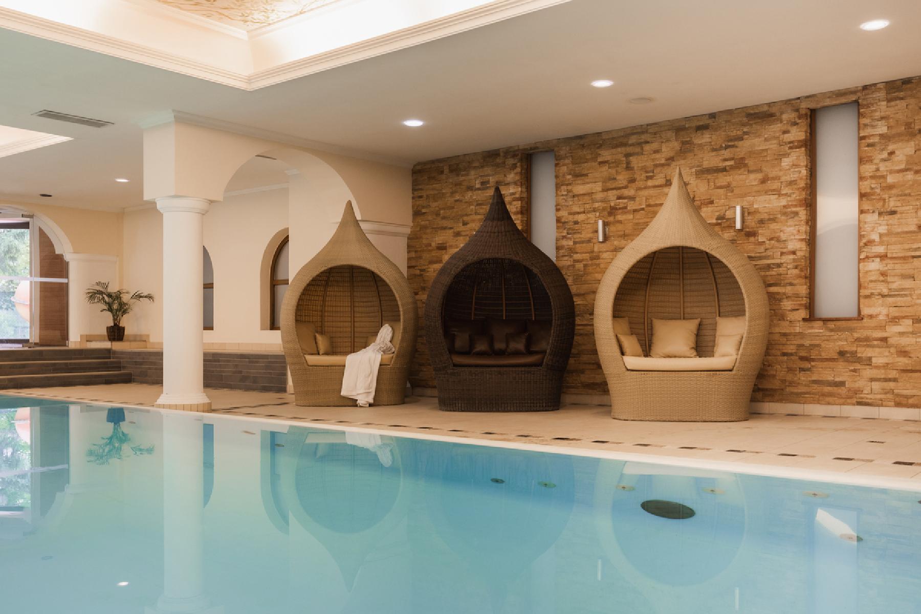 - Nutzung des ca. 2000 m² großen Wellnessbereichs mit folgenden Einrichtungen (Öffnungszeiten lt. Aushang vor Ort):