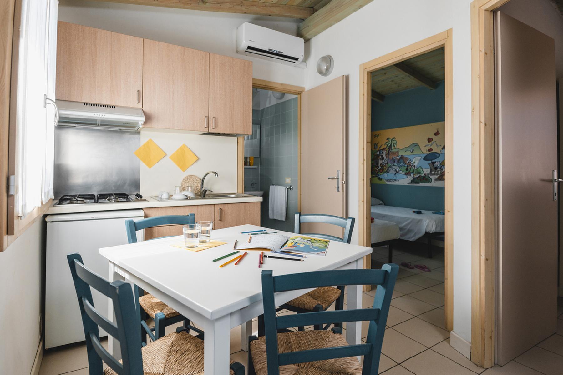 Die komfortablen Appartements verfügen über TV, Klimaanlage, Dusche, WC, Haartrockner und eine Terrasse. Die Appartements verfügen über Kühlschrank. Der Wohnschlafraum verfügt über ein Einzelschlafsofa. Im 1. Schlafraum steht ein Doppelbett zur Verfügung. Im 2. Schlafraum befinden sich zudem 2 fixe Einzelbetten. Die durchschnittliche Größe der Appartements beträgt ca. 30 m².