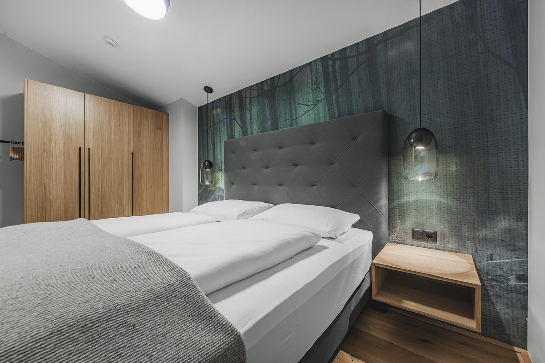 Die Chalets befinden sich im Erdgeschoss oder im Obergeschoss, je nach Zuteilung vor Ort, und verfügen über Kabel-TV, Infrarotkabine, und Balkon oder Terrasse. Die Zimmer bestehen aus zwei Schlafräumen mit Bad (Dusche/WC), mit jeweils einem Doppelbett sowie aus einem Wohnraum mit Doppelschlafsofa und vollausgestatteter Küche (Herd, Backofen, Kühlschrank, Wasserkocher, Spülmaschine, Kaffeemaschine). Die durchschnittliche Chaletgröße beträgt ca. 95 m².