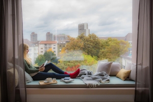 Zimmerupgrade: Die komfortablen und modernen Zimmer verfügen über einen Flat-Screen-TV, Telefon, Weckeinrichtung, Sitzgelegenheit, Minibar (gegen Gebühr), Klimaanlage, Schreibtisch, Dusche, WC, Haartrockner und eine Nespresso-Maschine. Das Glanzstück dieser Zimmerkategorie ist ein besonderes Erkerfenster mit einem großen Sitzbereich, wo Sie den Ausblick genießen können. Die Zimmer bestehen aus einem Schlafraum mit einem Doppelbett. Belegung: Min.: 2 Erwachsene. Max.: 2 Erwachsene. Die durchschnittliche Zimmergröße beträgt ca. 28 m².