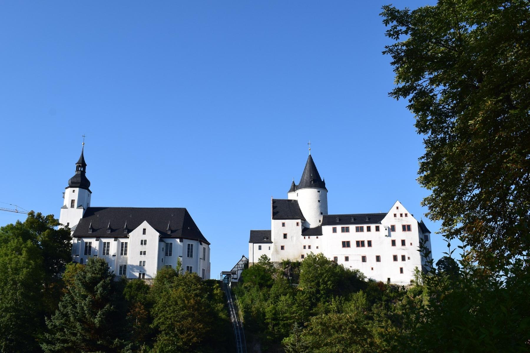 Schwarzenberg im Erzgebirge, eine malerische Stadt in Sachsen, Deutschland, beeindruckt mit ihrer reichen Bergbau- und Handwerksgeschichte sowie ihrer idyllischen Lage inmitten der waldreichen Landschaft des Erzgebirges. Das historische Stadtzentrum ist geprägt von schönen Fachwerkhäusern und der imposanten St. Georgenkirche mit ihrem markanten Turm. Das Bergbaumuseum veranschaulicht die regionale Bergbautradition, während das Museum für Mineralwasser die örtlichen Mineralquellen hervorhebt. Schwarzenberg ist ein idealer Ausgangspunkt für Erkundungen der Erzgebirgslandschaft, bekannt für Wanderungen sowie Wintersportarten wie Skifahren und Rodeln. Besucher können regionale Spezialitäten wie Erzgebirgische Schnitzel und traditionelle Weihnachtskunsthandwerke in örtlichen Restaurants und Märkten genießen.