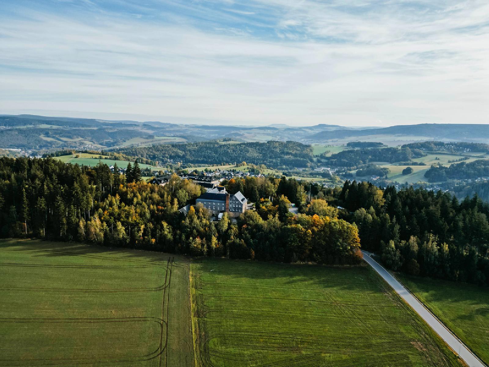 Das Sonnenhotel Hoher Hahn befindet sich rund 4,5 km vom Zentrum entfernt. Cafés und Restaurants sowie Einkaufsmöglichkeiten erreichst Du nach ca. 5 km. Wir empfehlen Dir einen Ausflug zu einem der zahlreichen Highlights der Umgebung, wie zur Sehenswürdigkeit Schloss Schwarzenberg (ca. 4,5 km), zu den Badegärten Eibenstock (ca. 19 km) sowie zum Freizeitpark Wurzelrudis Erlebniswelt (ca. 18 km). Die Bergbahn Bermsgrün Ski Lift liegt etwa 500 m vom Haus entfernt. Direkt am Haus befinden sich zwei Langlaufloipen.
