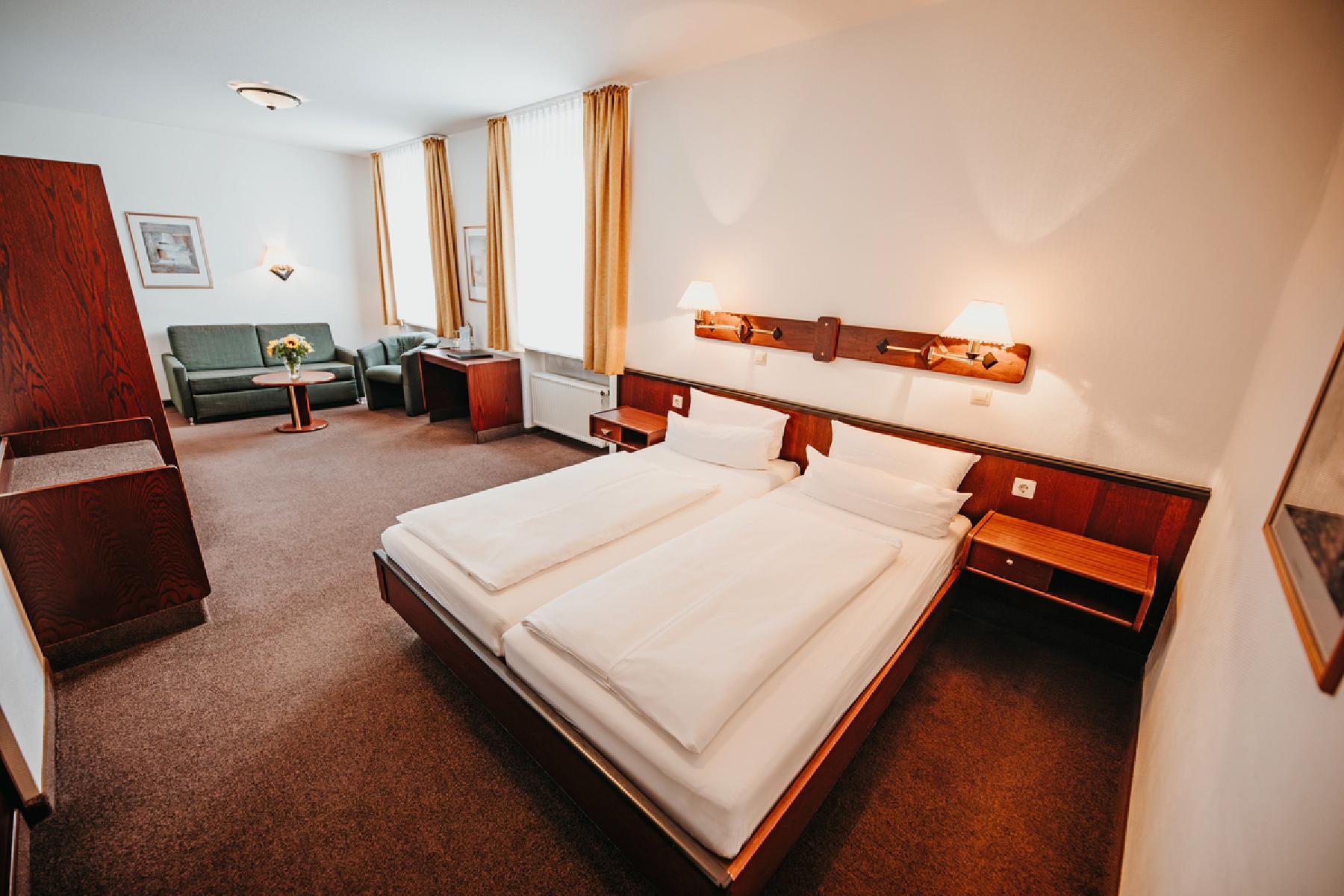 Die Zimmer "Bergmann" verfügen über Kabel-TV, Telefon, Dusche oder Badewanne, WC und Haartrockner. Die Zimmer bestehen aus einem Schlafraum mit einem Doppelbett und einem Doppelschlafsofa. Die durchschnittliche Zimmergröße beträgt ca. 27 m².